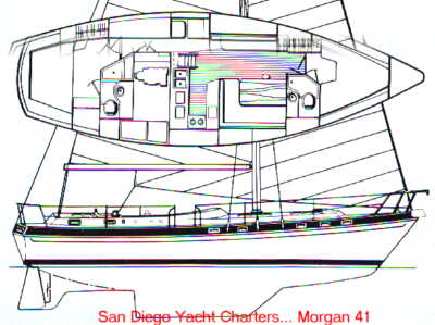 It has 2 berths (1 v-berth in the bow and 1 berth aft), each with a double-size bed. The aft berth has it's own private head/shower, and there is a second head/shower forward. The Morgan 41 can actually sleep 7, since the salon table lowers and converts into a double bunk, plus there's a single opposite it on the port (left) side.